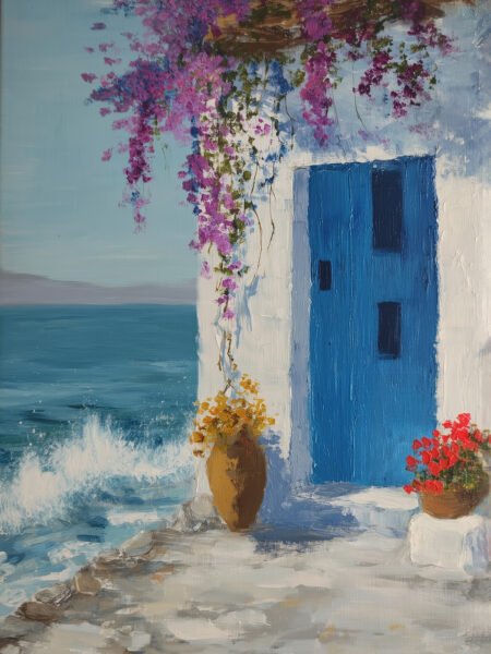 Melody of the Shore uses bright colors and humble strokes to portray the daily life and serenity of a coastal town in Gozo. Fishing boats dot the sea, while sunlit white walls gleam, like a softly sung seaside poem carrying the ease of time and the rhythm of life.