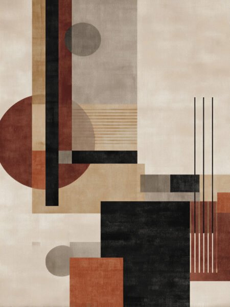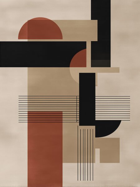 This artwork uses clean lines and geometric shapes to form a balanced composition. The interplay of brick red, beige, and black creates a calm yet structured aesthetic. It evokes the rhythm of architecture and the abstract language of cities, perfect for modern interiors seeking a refined, understated artistic atmosphere.