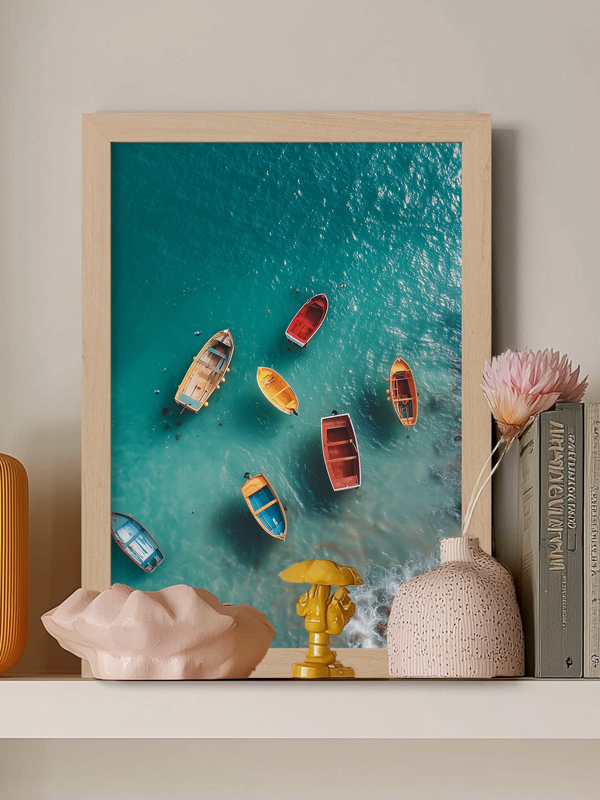 “Colorful Waltz on the Sea” depicts a vibrant array of boats anchored in the waters of Malta, as if dancing gracefully upon the deep blue sea. Each boat symbolizes the unique culture and vibrant life of Malta. Through vivid colors and dynamic composition, the artwork captures the lively and energetic spirit of this ocean, bringing the scene to life with every splash of the waves.