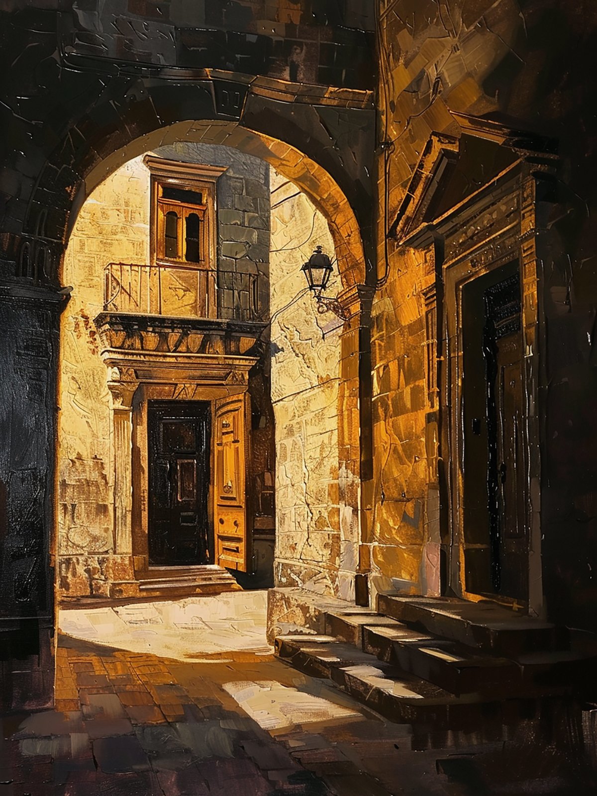 The watercolor “Mdina Interwoven with Light and Shadow” is like a dreamy window opening to the past. At dusk, the soft light drapes the buildings of the ancient city of Mdina in a dreamy veil. Light and shadow shift deftly among them, outlining the light-dark contours of the walls. The stone textures seem to whisper poems of time. Narrow streets are split by the dusk light and shadow, half bathed in warm gold, half shrouded in mysterious darkness. This interweaving and clashing of light and shadow is like a heartfelt dialogue between history and reality, guiding viewers through time and space to immerse in the tranquil and profound dusk atmosphere of the ancient city, and perceive the romance and mystery that transcend time.