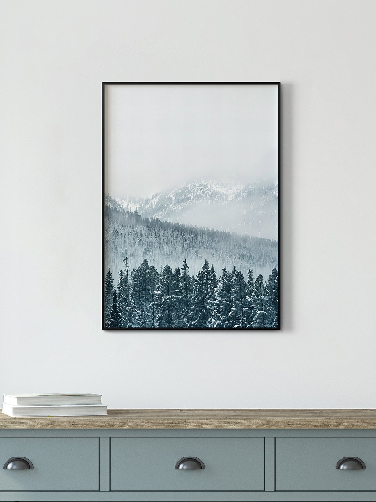This image depicts a forest shrouded in thick mist, with trees covered in snow, creating a scene that resembles a snowy wonderland. The fog drifts among the trees, evoking a sense of mystery and tranquility, allowing one to feel the purity and calmness of nature.