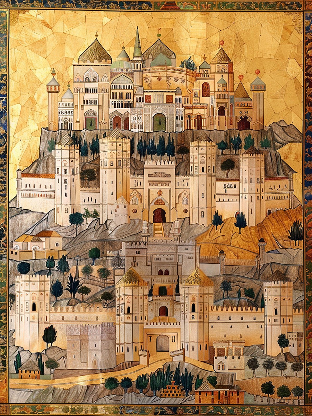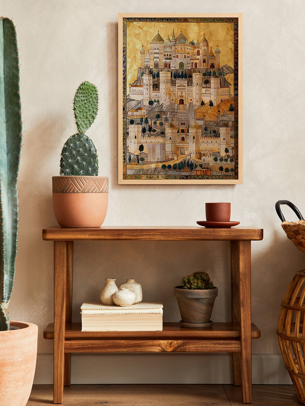 The decorative painting “The Ancient Rhyme of Mdina” is like a window opening to the depths of history. In the picture, the buildings of Mdina in Malta are arranged in a scattered yet orderly way. The ancient city walls, towering towers, and houses of various styles exude a strong historical atmosphere under the depiction of delicate brushstrokes and rich colors. The golden background seems to carry the brilliance of the years. Every texture and every detail tell of the past glory and vicissitudes of this city. It is not only a visual feast but also a heartfelt tribute to ancient culture.