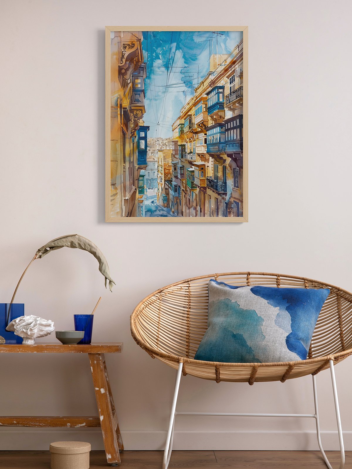 Valletta’s Street Charm: A Vivid Watercolor Reverie Style D
